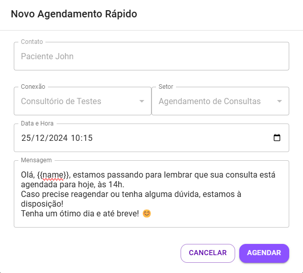- Mensagem a ser enviada pelo agendamento;