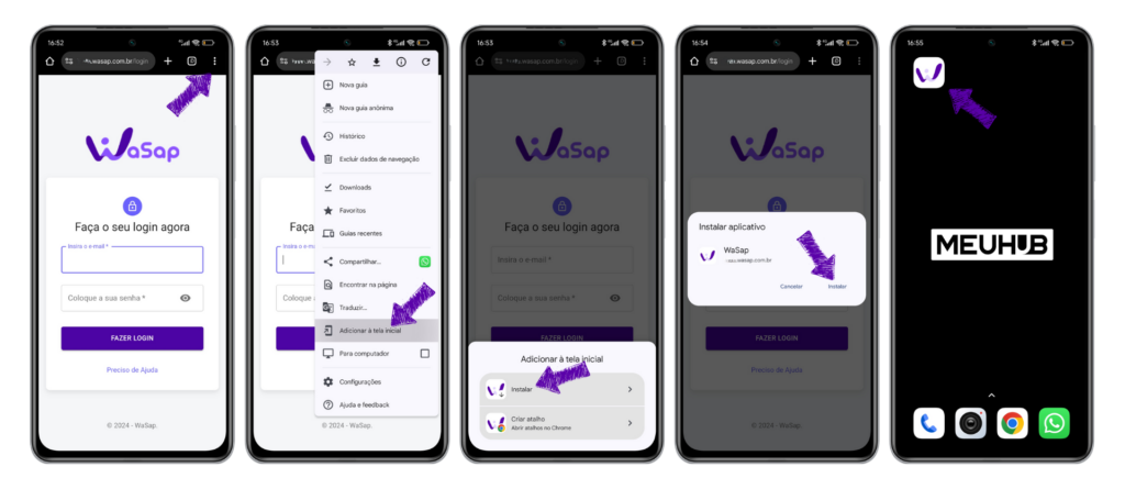 - O aplicativo será instalado e, em alguns segundos, o ícone do WaSap aparecerá na tela inicial do seu celular.